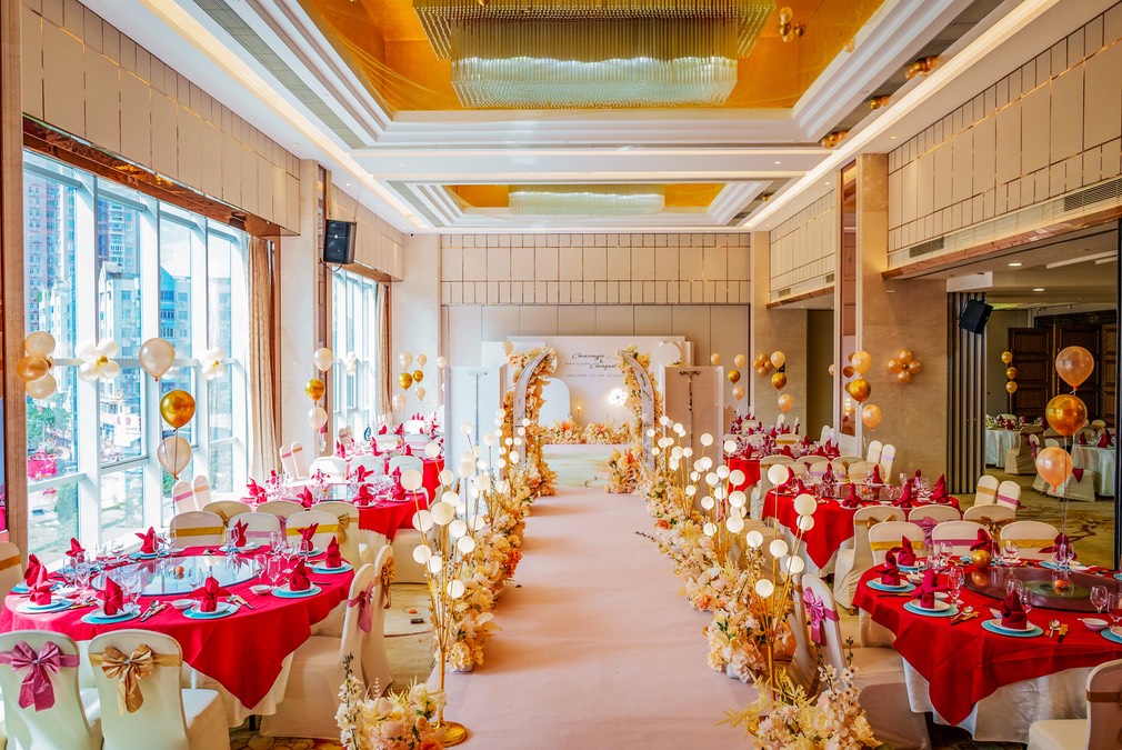 鴻德國際酒店為了讓客戶得到更好的婚禮體驗,我們與專業的婚宴策劃人員合作,組成的婚宴團隊為您出謀劃策,我們將根據您的婚宴主題和個性化需求提供專業的策劃方案,確保每個細節都符合您的需求,讓您在整個婚禮過程中得到完美的甜蜜體驗。